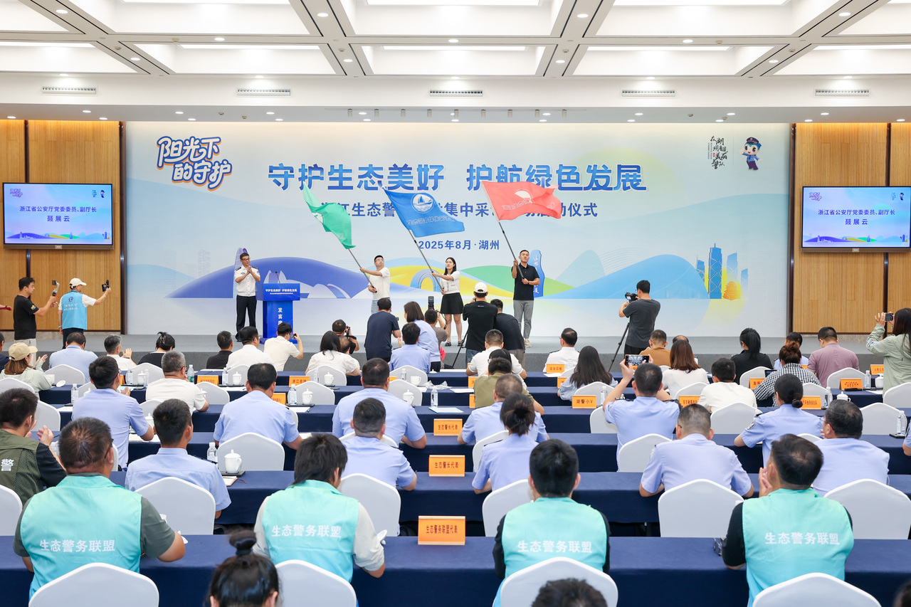 上午10时30分,启动仪式正式开启。“守护的不仅是青山绿水,更是全省经济社会高质量发展的根基和民生福祉。”作为“两山”理念发源地公安机关,近年来,浙江公安机关坚持共富警务、共治警务、生态警务一体推进,打击、防范、治理、服务多措并举,积极构建公安牵头、相关部门联动的生态警务机制,进一步守牢生态底色,形成了一批从山顶到海洋,以警察蓝守护生态绿、以警务效助力共富行的生动事例。特别是湖州,坚持生态优先、绿色发展,率先开展生态警务实践,推动共治中心、一体化机制、协同智治应用、生态警长“四项建设”,积极探索体制机制变革、技术基础创新,让生态治理更加智慧高效,形成了全省生态警务建设新样板。